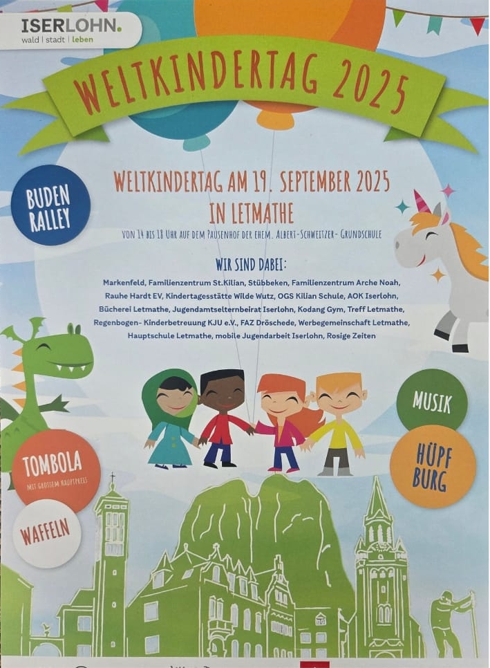 Am 19.September 2025 fand wieder der alljährliche Weltkindertag statt. Das Kodang Gym unterstützte dieses Jahr in Letmathe beim Spielezelt, dem Verkauf von Waffeln und Kuchen, dem Würstchengrillen und beim allgemeinen Auf- und Abbau.