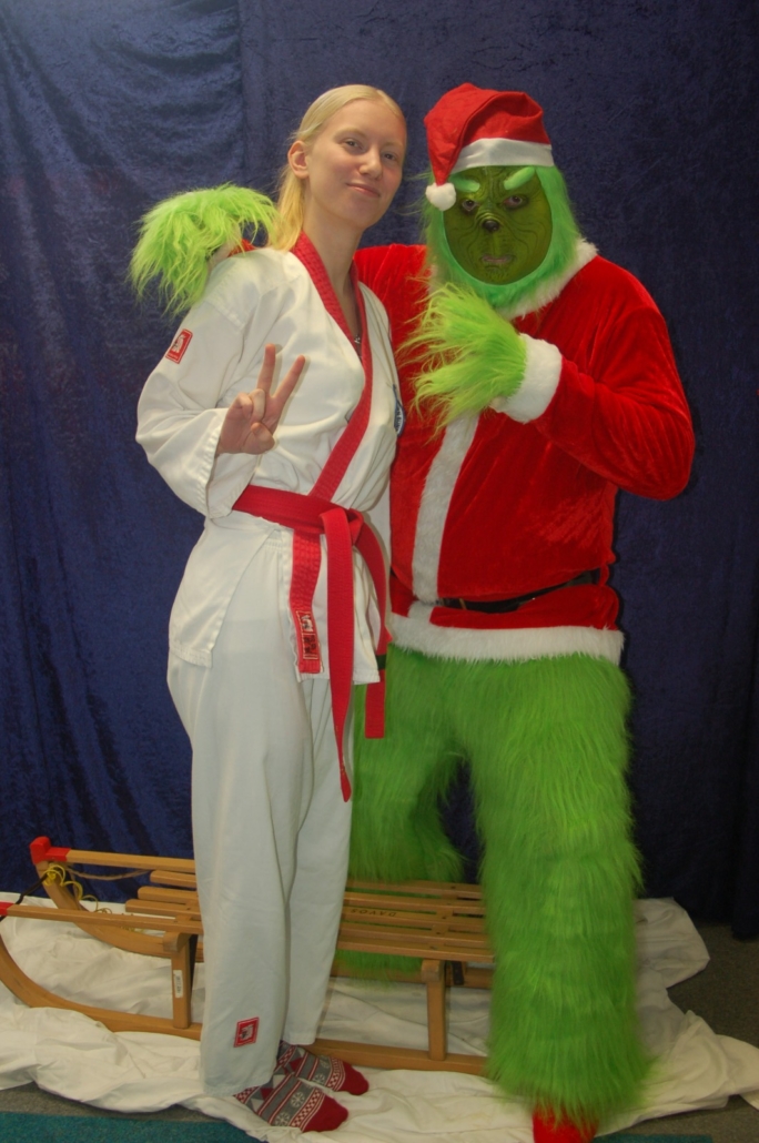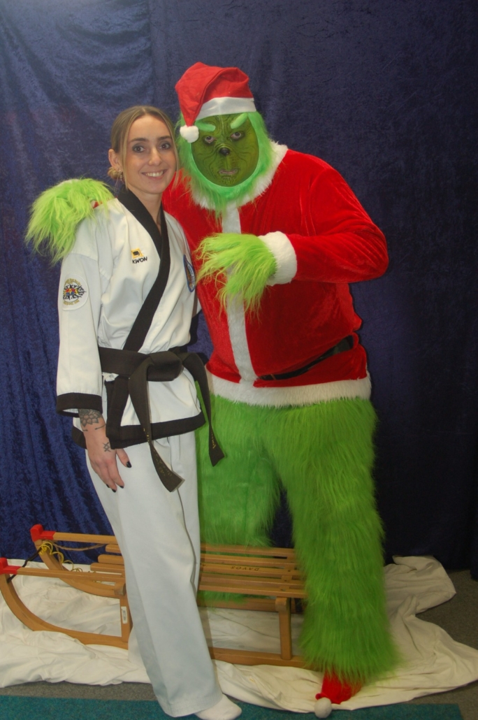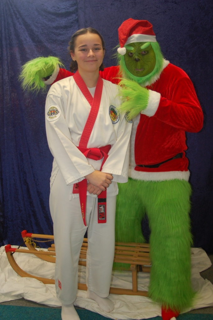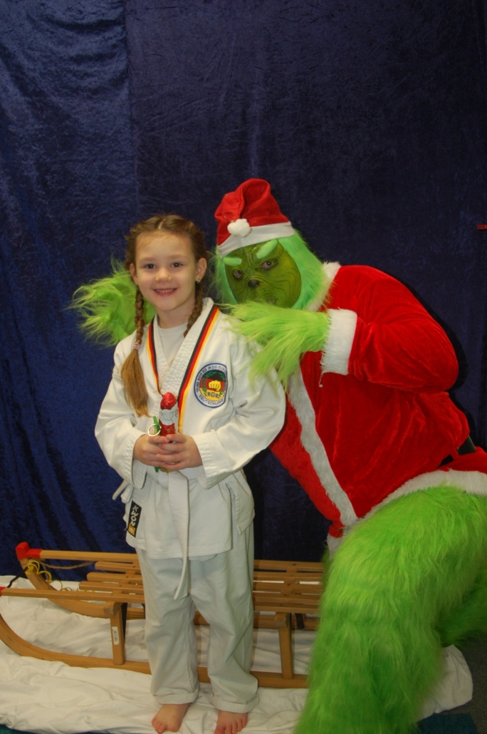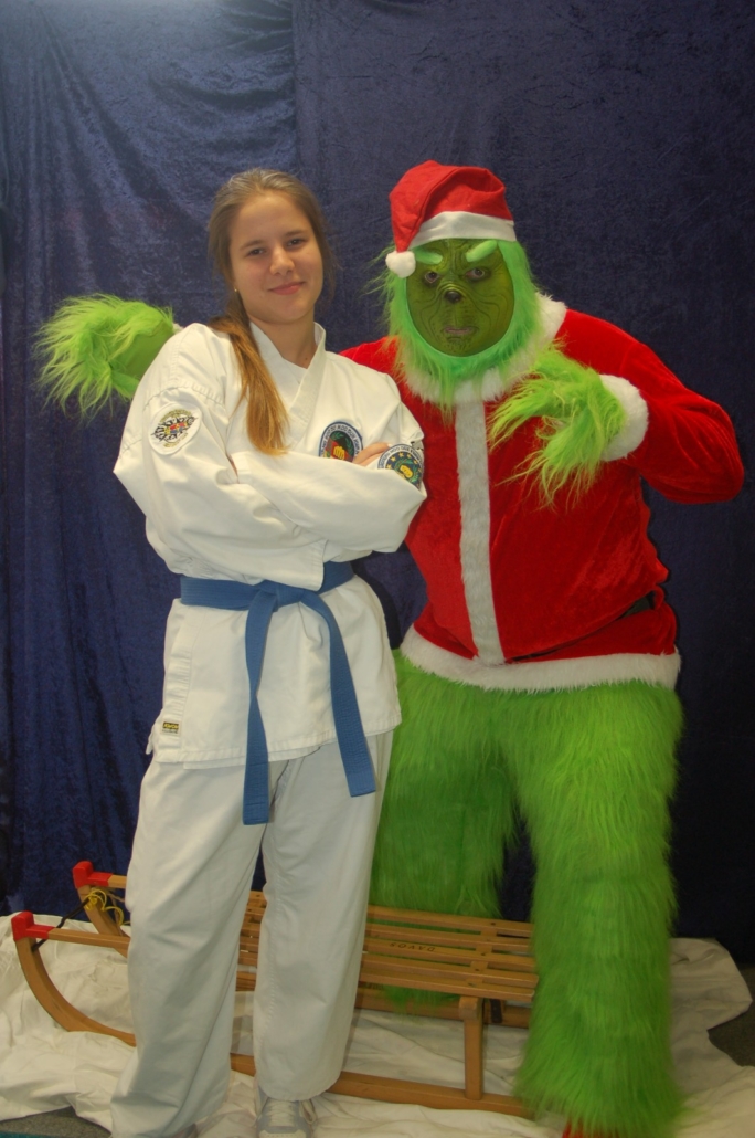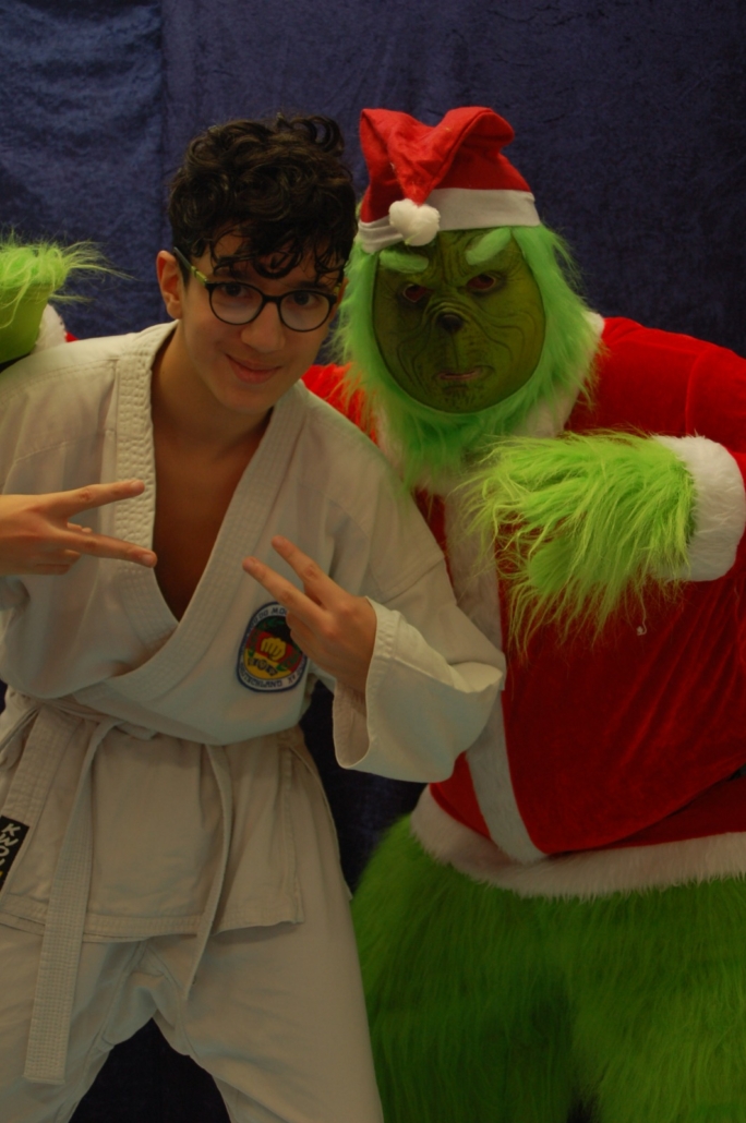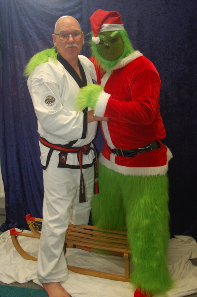 Wer hätte gedacht, dass ausgerechnet der Grinch den Weg ins Kodang Gym Letmathe findet? Zwischen den Wettkämpfen schlich er sich plötzlich in die Halle – und sorgte für jede Menge Gelächter. Statt Geschenke zu klauen, versuchte er diesmal, den Technikerpokal an sich zu reißen. Zum Glück war Nevio Palermo schneller und verteidigte seine Trophäe mit sportlichem Einsatz.