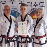 Am Samstag durfte sich Lukas über einen besonderen Meilenstein in seiner Kampfkunstlaufbahn freuen: Im Kodang Gym absolvierte er erfolgreich seine Prüfung zum 2. DAN im Tang Soo Do.